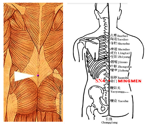 Traduz-se como a ‘porta de entrada para o nosso Ming’, “porta da vida” e é aqui que se diz que a nossa essência reside. Através da manipulação deste ponto podemos afetar a essência do corpo, bem como as funções energéticas conectadas aos Rins. Linhas esotéricas da prática médica chinesa também afirmam que este ponto pode ser usado para mudar a conexão que uma pessoa tem com sua ‘linha de Ming’.