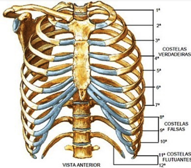 3. Costelas. As costelas envolvem os pulmões como a armação de uma canoa. Como devem estar livres para se expandir, os músculos entre elas devem estar relaxados, e não retesados. Os ombros têm de estar relaxados e abaixados para permitir a livre flutuação das costelas durante o processo da respiração e a prática dos sons de harmonização.