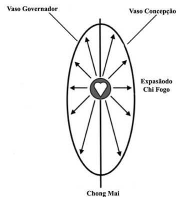 O movimento Fogo é uma energia em expansão que fornece calor ao corpo. Quando em equilíbrio, pulsa para fora do centro do Chong Mai na área do Coração. As ondas de aquecimento da energia do Fogo fornecem um catalisador para todas as funções do corpo físico, bem como ditam a saúde do aspecto Yang da mente e do corpo. A imagem abaxo mostra a localização da energia do Fogo do corpo e seus movimentos.